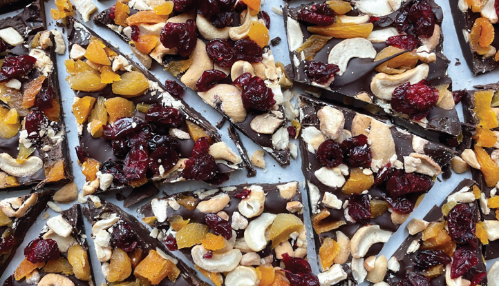 Dark Chocolate Bark With Cashews, Apricots and Cranberries A quick, easy and more nutritious holiday treat - Whip up a batch to gift to friends, or ...