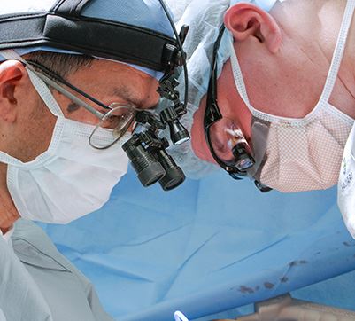 Photo: Independence Health System thoracic surgeons Michael Szwerc (left) and Brian Lace (far right) with Kirby Thornton, Respiratory Care Services, ...